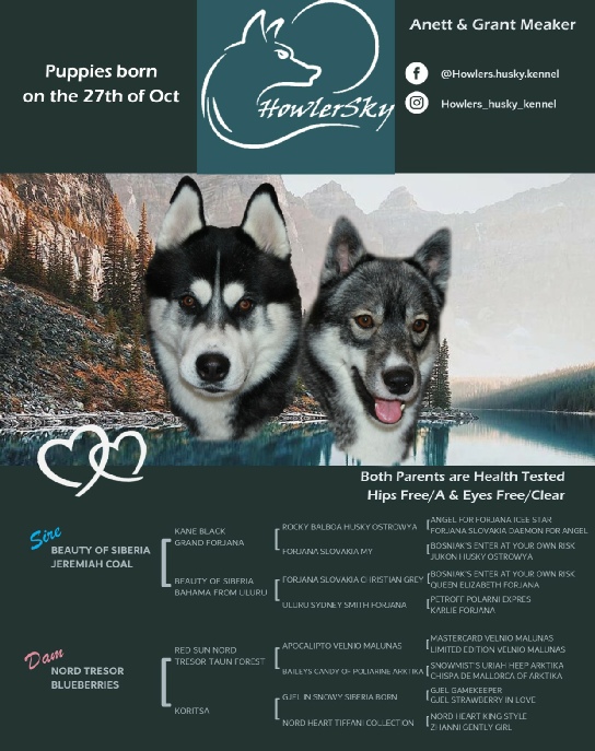 Puppies are born and raised in our loving home, living together with our kids and the rest of the pack.